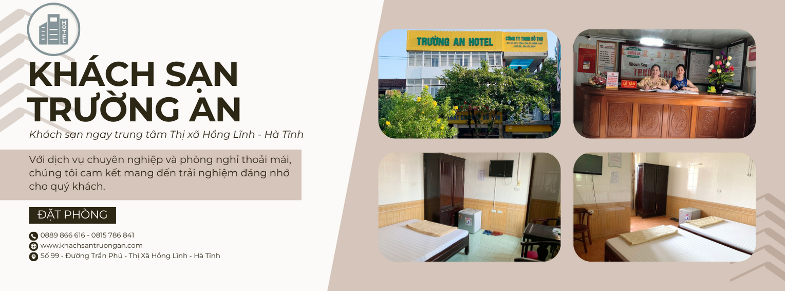 Khách sạn Trường An – Nơi lý tưởng cho mọi hành trình! Với vị trí tuyệt vời tại trung tâm thị xã Hồng Lĩnh, khách sạn Trường An là điểm dừng chân lý tưởng cho du khách. Với dịch vụ chuyên nghiệp và phòng nghỉ thoải mái, chúng tôi cam kết mang đến trải nghiệm đáng nhớ cho quý khách. Hãy đặt phòng ngay hôm nay và khám phá sự hoàn hảo tại Khách sạn Trường An!